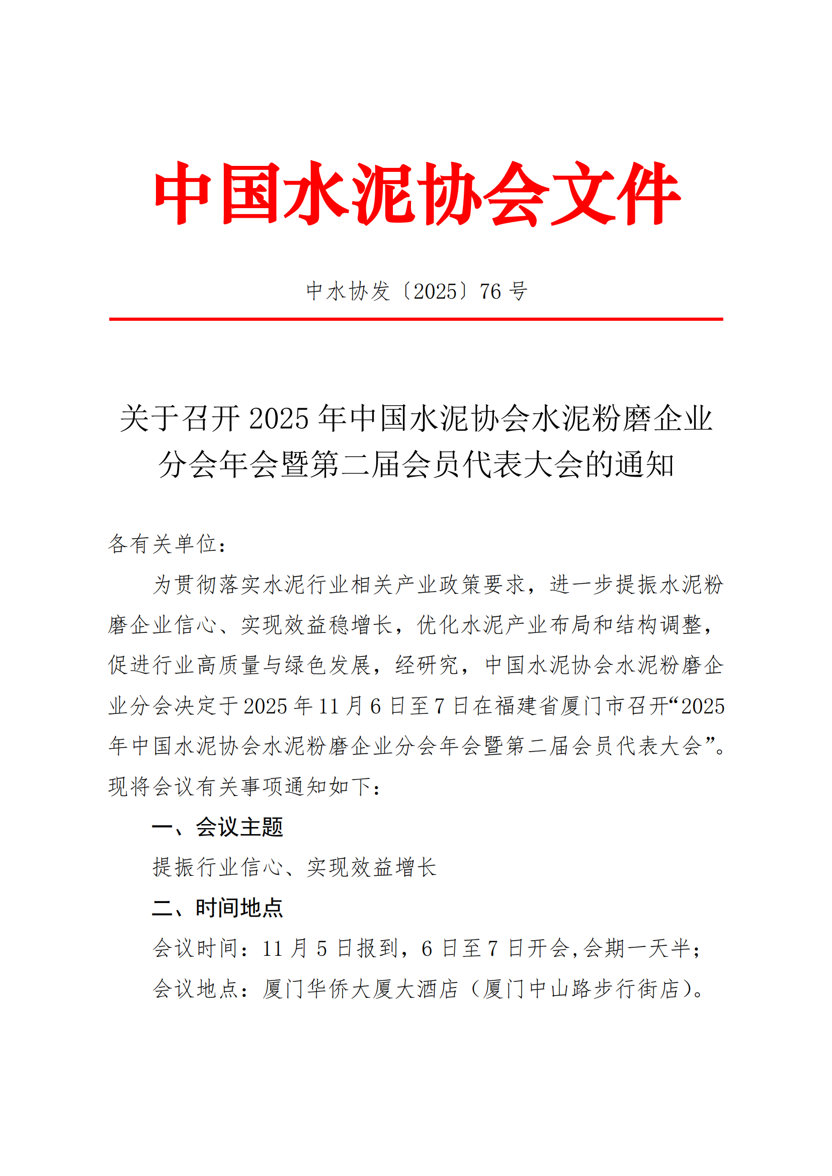 中國水泥協(xié)會關(guān)于召開2025年中國水泥協(xié)會水泥粉磨企業(yè)分會年會暨第二屆會員代表大會的通知